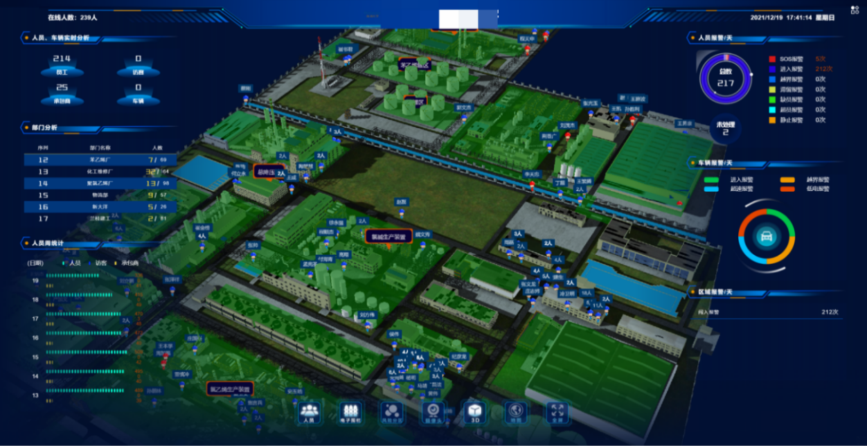 實時數據可視化:管理平臺提供直觀的電子地圖,實時顯示人員、車輛及設備位置,支持多維度數據分析。