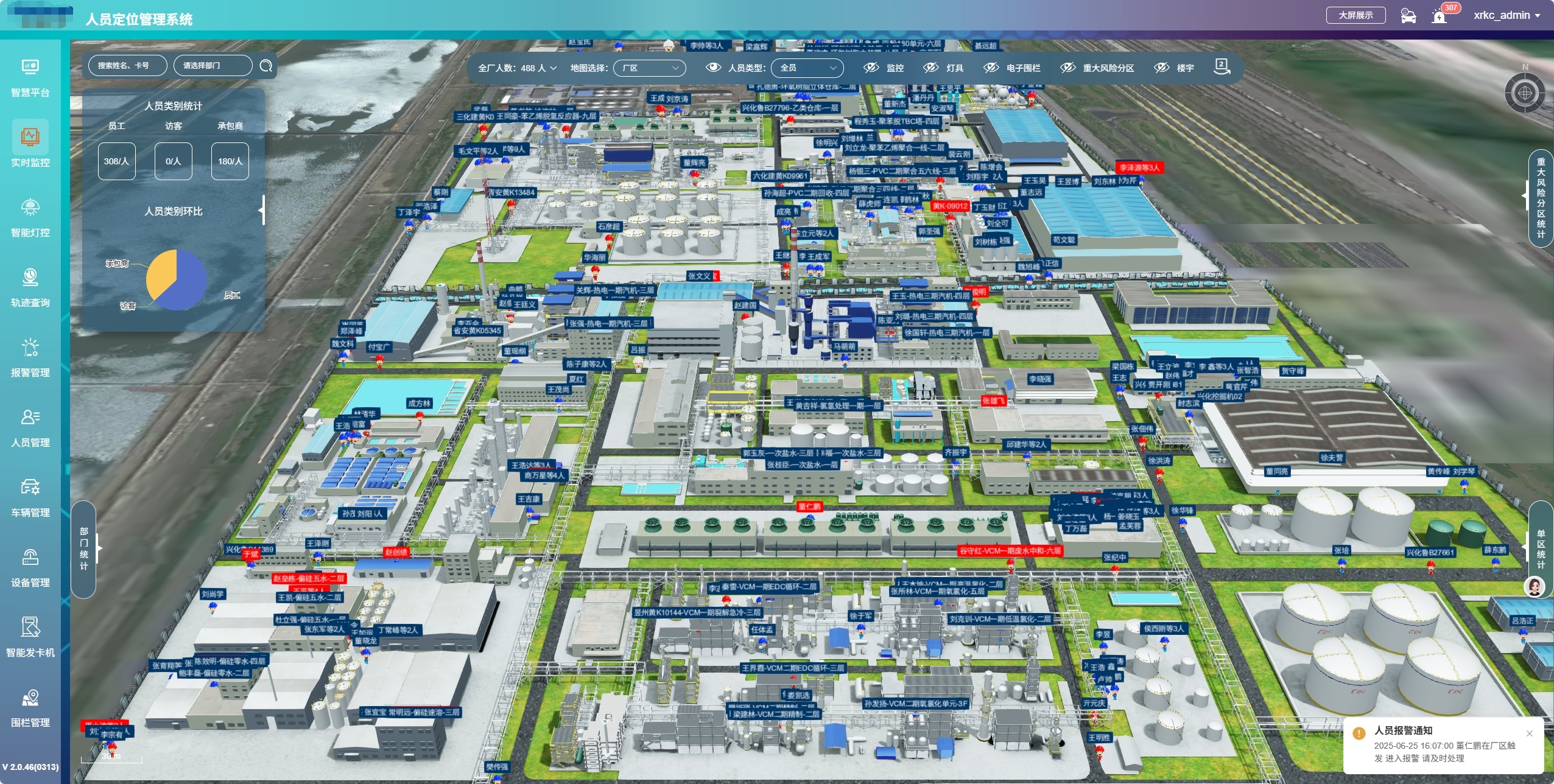 新銳科創北斗RTK+UWB定位系統內置了豐富的智能預警功能,能夠對石化廠內的各種安全風險進行實時監測和預警。通過設置電子圍欄,系統可以對危險區域進行劃定,當人員或設備進入、離開或在圍欄內長時間滯留等異常情況發生時,系統會立即發出預警信息,通知管理人員及時處理。此外,系統還具備人員聚集預警功能,當某個區域內人員數量超過設定閾值時,系統會自動報警,提醒管理人員注意人員疏散,防止因人員過度聚集引發安全事故。同時,對于車輛的異常移動、靜止時間過長等情況,系統也能及時察覺并發出預警,幫助企業提前發現潛在的安全隱患。